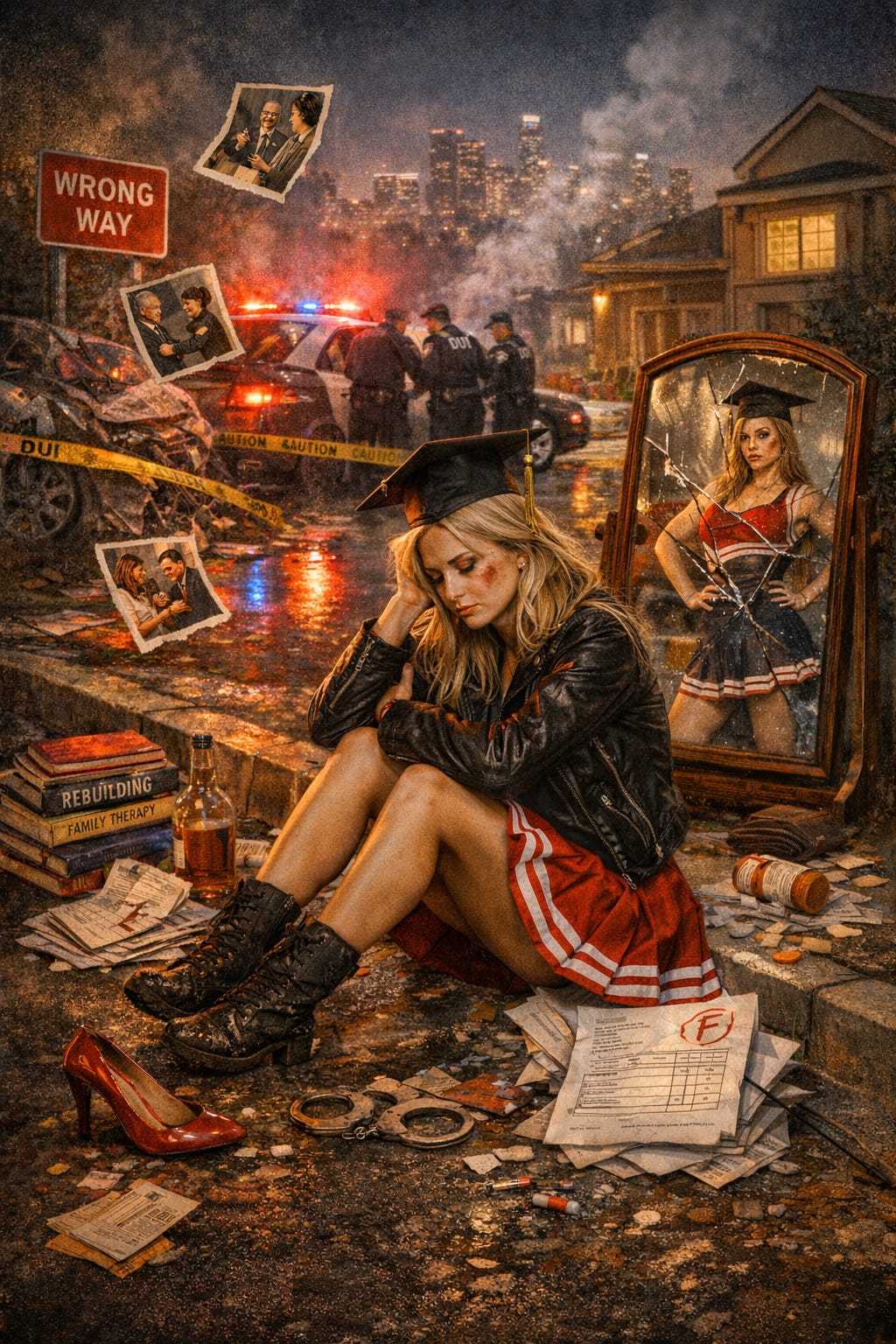High school became a series of limit tests - dress code violations, a sliver of midriff, a cheer skirt just short enough to make a point. When the school called, my mom defended me: “I just bought her that.” Phone confiscated? She marched in to retrieve it, unleashing her wrath over the inconvenience. Someone menaced me? She was ready to sue for emotional distress.